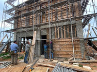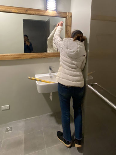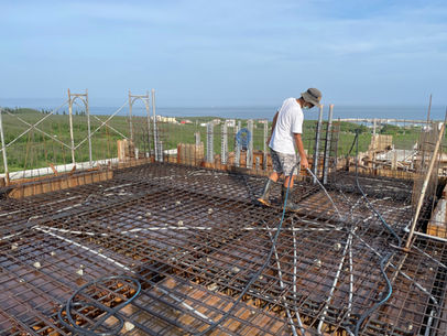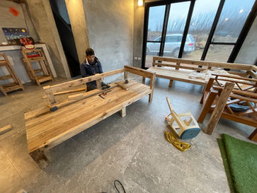作為沒有建築經驗的新人,我們並不畏懼挑戰。從綁鐵、模板工程,到水電安裝、室內傢俱,我們與師傅們肩並肩,一步步學習,甚至親自動手,親身體驗每一個施工過程。整棟民宿的地磚,幾乎是我們親手貼的,從最初的亂七八糟,到最後細緻精緻,這一路的摸索與堅持,讓我們終於看到了這片空間的完整面貌。